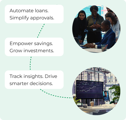 • Loan Management: Create customizable loan products, automate approvals, and integrate bundled loan services with insurance.